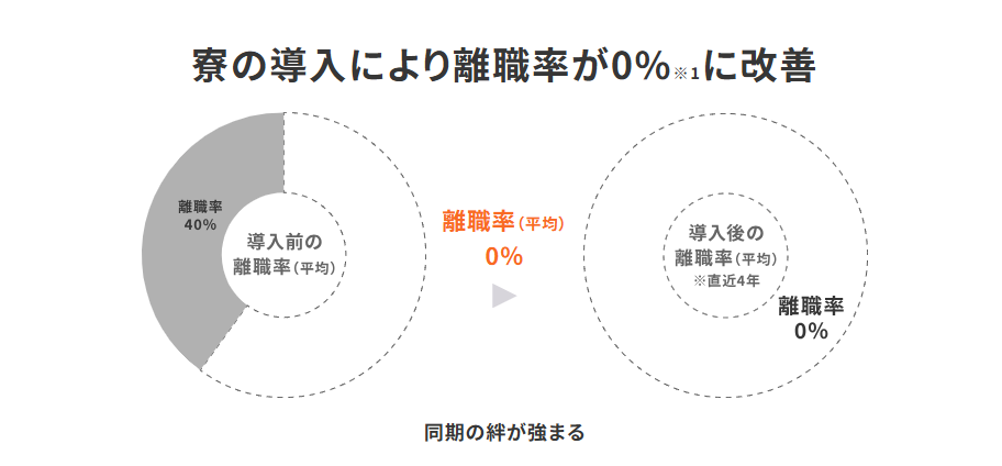 三和建設では、ひとづくり寮の導入で「社員定着率100%」という成果を実現しました。