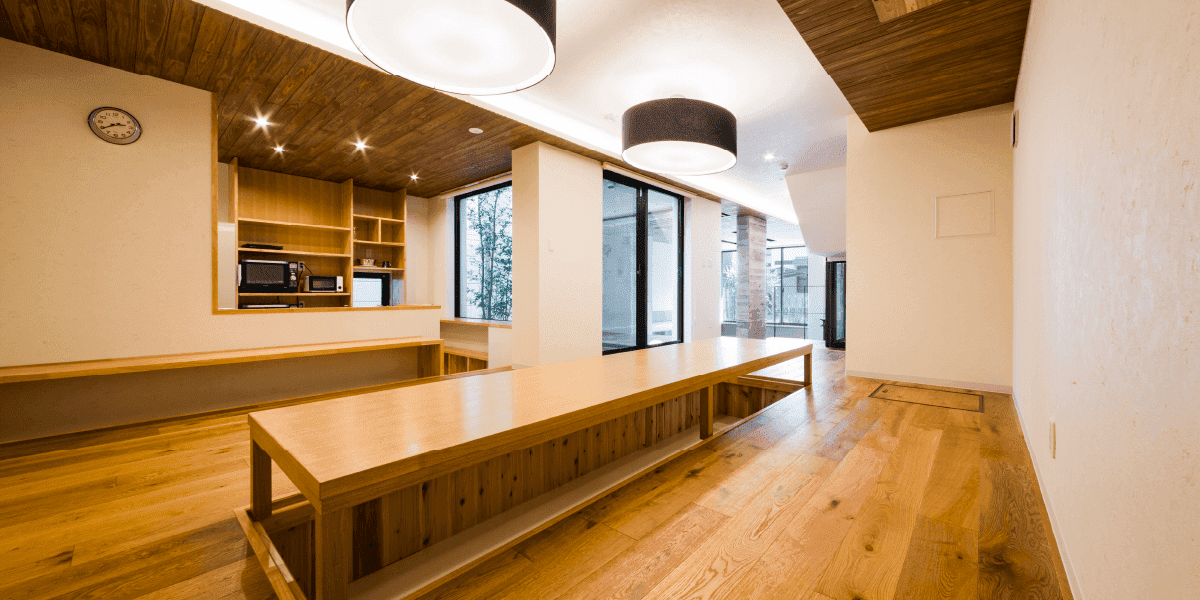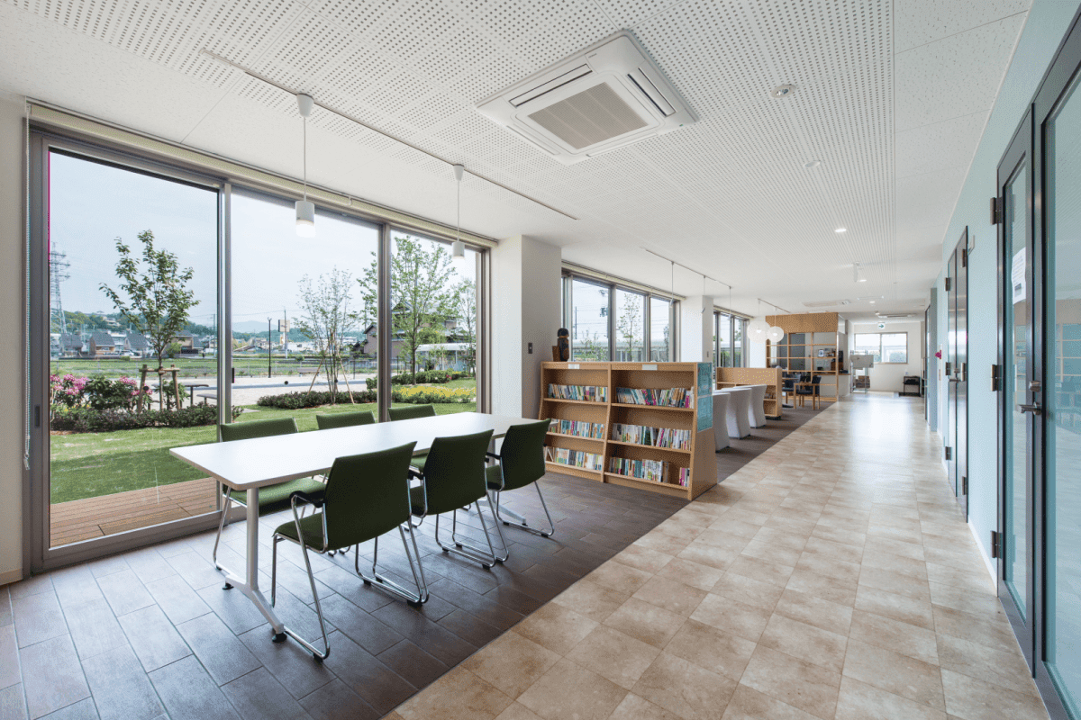 共用部には、住人同士が会話を楽しめる場所や、庭を眺めながら読書ができる心地よい空間を配置。