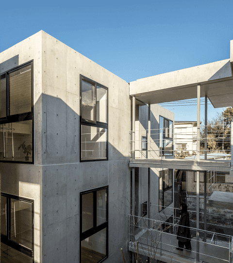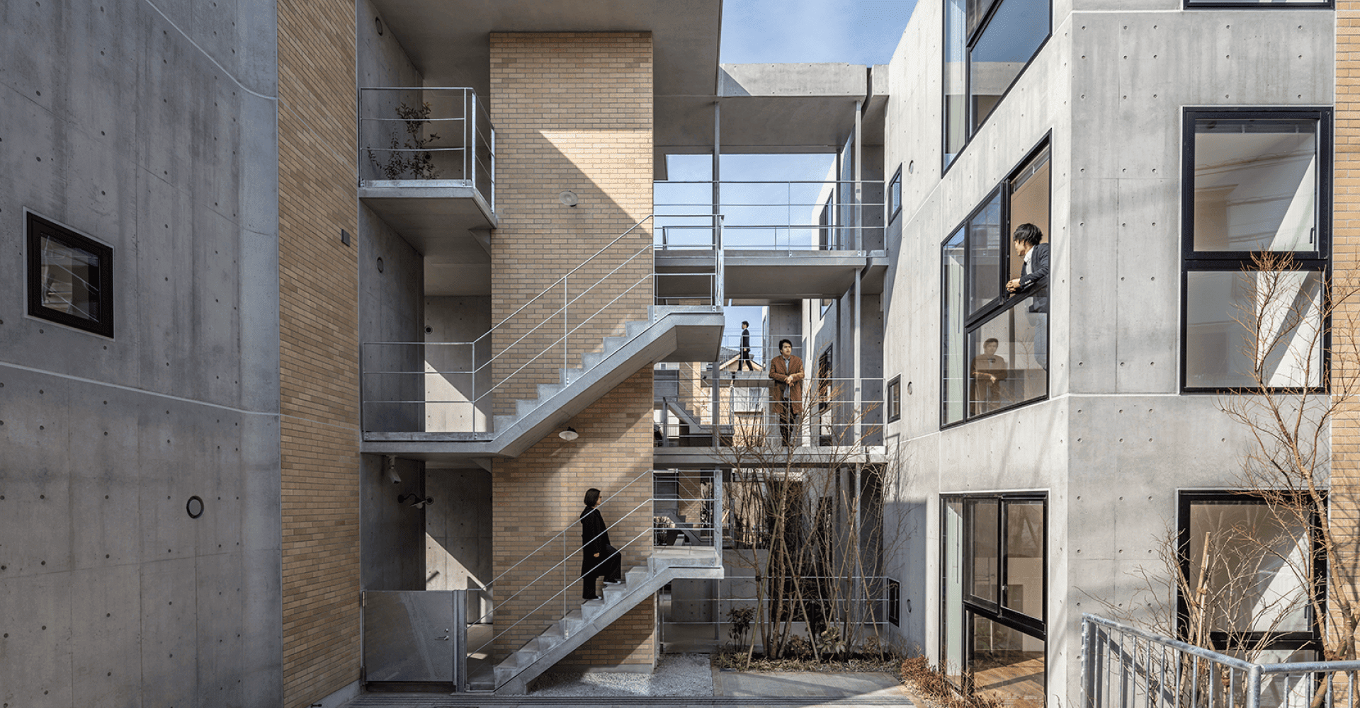 採光や通風性、プライバシ―を確保しながらも、住人同士の存在が見え隠れする都市的な空間を演出。